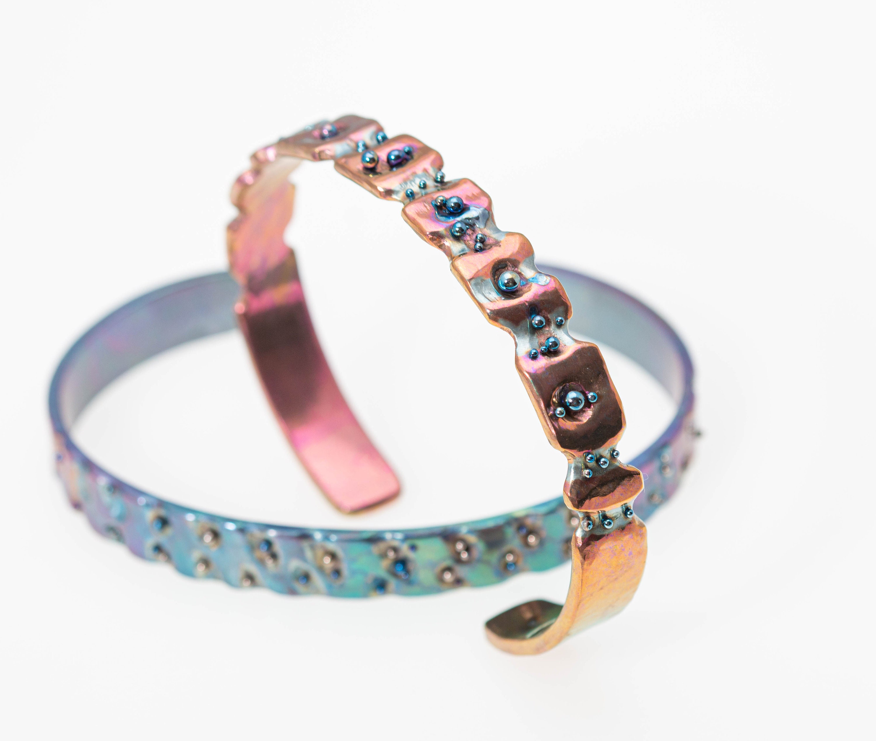 Main characteristics: non-allergenic, light weight, strong and flexible. Made in a combined technique of anodizing and artistic welding. Absolutely unique design by Tiqualia.